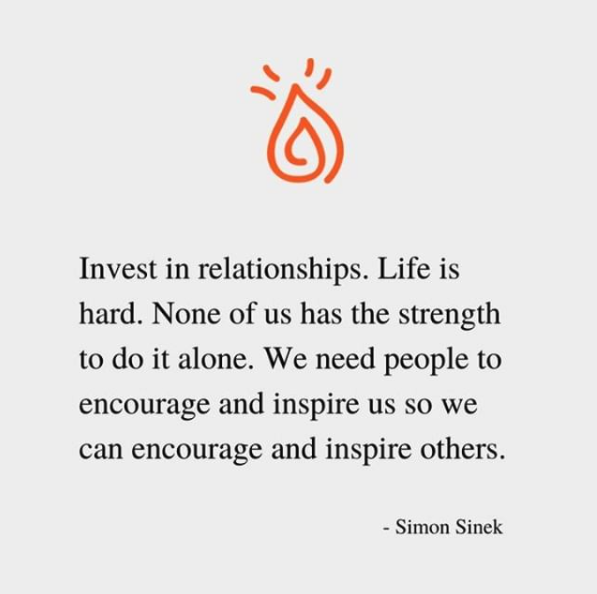 I love how Simon Sinek puts it (at left). For a dose of inspiration, click here and check out a quick video from Simon explaining how important it is to lean on each other when the going gets tough.